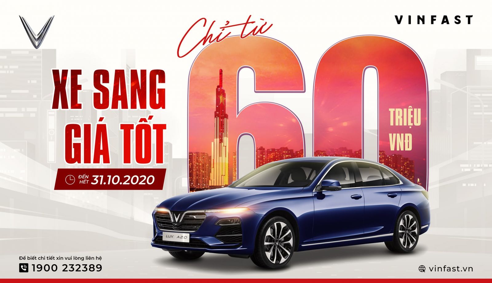 Trong tháng 10, các khách hàng có cơ hội sở hữu VinFast LUX A2.0 chỉ từ 60 triệu đồng cùng với hình thức thanh toán linh hoạt và các chính sách ưu đãi hấp dẫn khác.